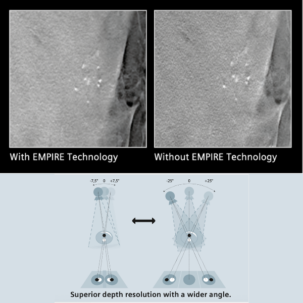 Los equipos Mammomat Inspiration ofrecen un flujo de trabajo simplificado y altamente automatizado, reduciendo pasos operativos y guiando intuitivamente al personal clínico durante toda la biopsia estereotáctica, lo que mejora la eficiencia en el diagnóstico. La configuración automática del modo estereotáctico y la adquisición de imágenes desde una sola estación de trabajo agilizan el proceso y aumentan la confianza diagnóstica.